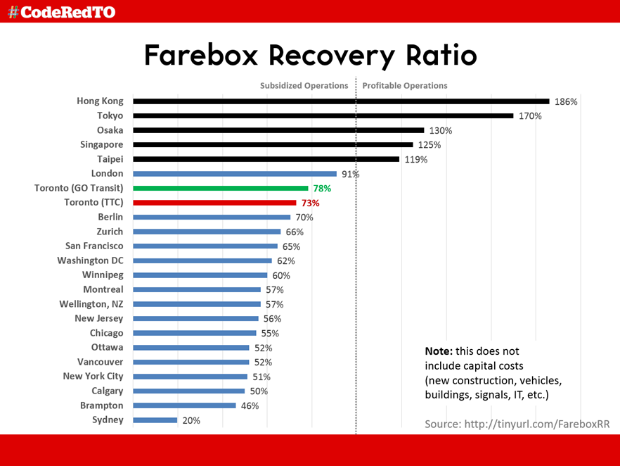 En cualquier caso, no es factible eliminar el déficit en 100%; tampoco es la práctica en ninguna ciudad con sistemas integrados de calidad. Solo en ciudades como Hong Kong, Tokio, Osaka, Singapur y Taipei, donde los sistemas de transporte manejan también ingresos por desarrollo inmobiliario se observan ingresos mayores a los costos operativos.
