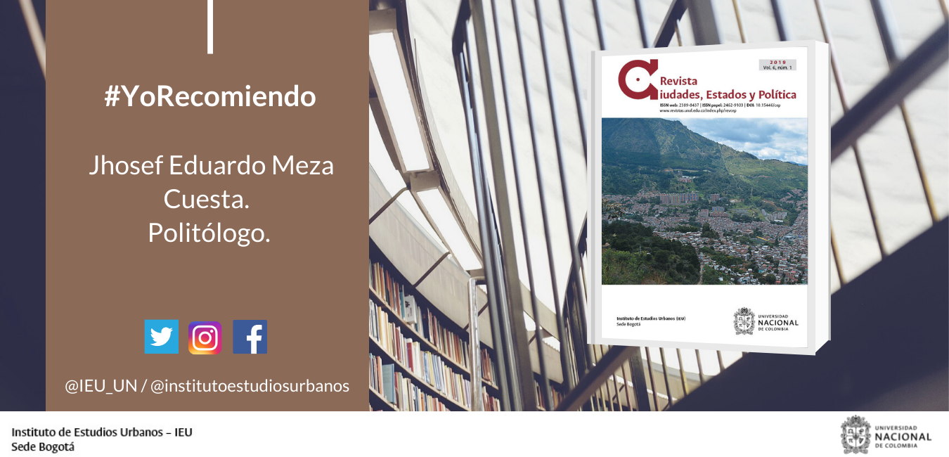 El politólogo Jhosef Eduardo Meza Cuesta recomienda su artículo “El volteo de tierras: modificaciones irregulares a los planes de Ordenamiento Territorial, Cundinamarca, Colombia”, publicado en la Revista «Ciudades, Estados y Política», del Instituto de Estudios Urbanos de la Universidad Nacional de Colombia.